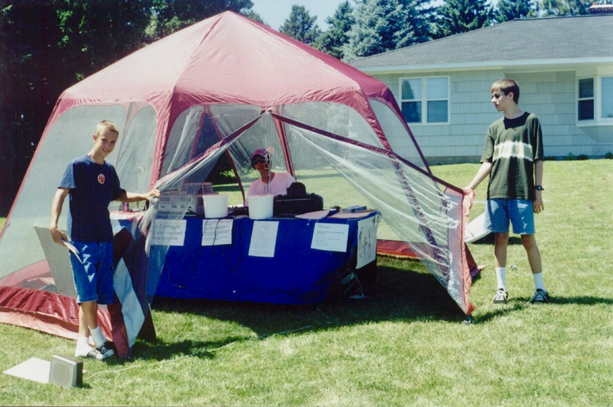 Joe and Jake also visited Ken as he worked on other radio stations during the summer. As the summer days passed by and the school year got closer, the two wondered what they would do with KRAM-FM while they were at school. A local community leader and friend Patrick Moore inspired the two to do some fundraising. During the month of August in 1999, the duo rode their bikes around to local businesses and sold sponsorships for their upcoming high school sports broadcasts. The two received support from 32 local business and over $2200 in donations. KRAM-FM got its first computer and automation system. KRAM was ready for when the two went to high school. The computer would play music and announcements during the day, and Joe and Jake would take over after school.