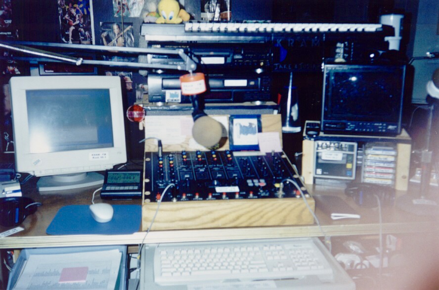 In December of 1997, Jake surprised Josiah with an early Christmas present for KRAM. A five channel Radio Shack audio mixer was ready for action. The two also acquired KRAM’s first computer, a MacIntosh SE-30 with 16MHz of processing power!